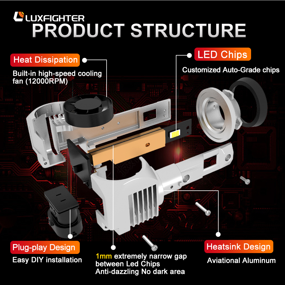 50,000 மணி நேரத்திற்கும் அதிகமான ஆயுட்காலம்: விமான அலுமினியத்தை எடுத்துக் கொள்ளுங்கள் பிரதான உடலில் நல்ல வெப்பச் சிதறல் உள்ளது, செதுக்கப்பட்ட வெப்ப மடு வடிவமைக்கப்பட்டுள்ளது மற்றும் 1,2000 ஆர்.பி.எம் டர்போ கூல் விசிறி சூப்பர் குளிரூட்டும் திறனை வழங்குகிறது. இந்த 880/881 எல்.ஈ.டி ஹெட்லைட் ஆயுட்காலம் 50,000 மணி நேரத்திற்கும் மேலாக உறுதி செய்ய முடியும்.