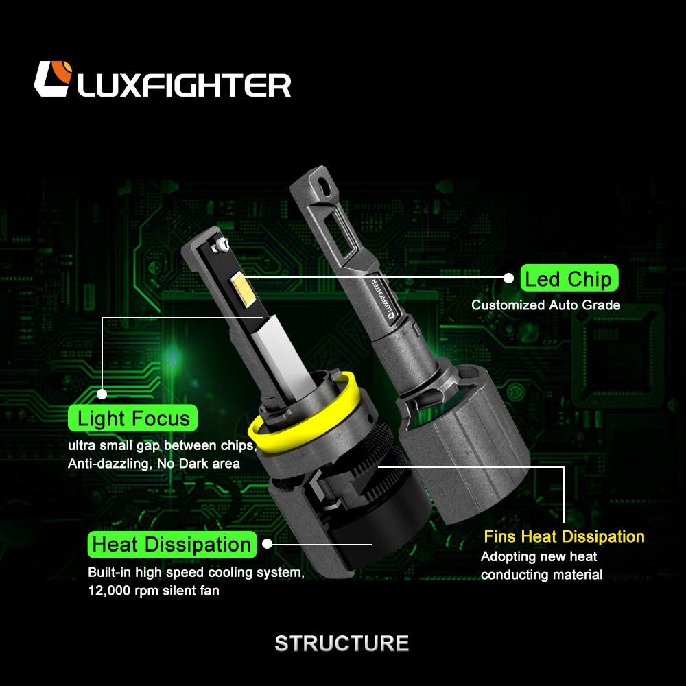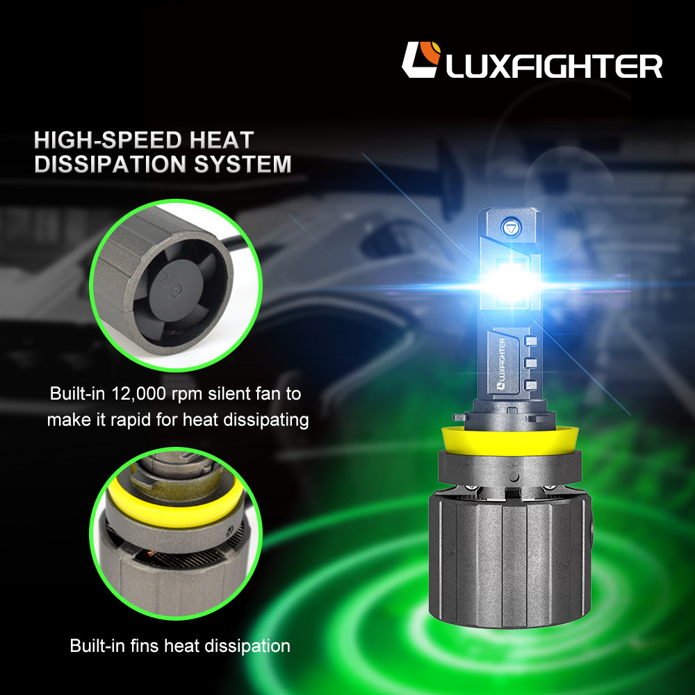 3. மூன்று வெப்ப சிதறல் வடிவமைப்பு: 12,000 ஆர்பிஎம் குளிரூட்டும் விசிறி மற்றும் 90 டிகிரி திருப்பு வெப்ப திரவம், இந்த வெப்ப சிதறல் வடிவமைப்புகள் லக்ஸ்ஃபைட்டர் எச் 7 எல்இடி விளக்கின் ஆயுட்காலம் 50,000 மணிநேரத்தை தாண்டுகின்றன.